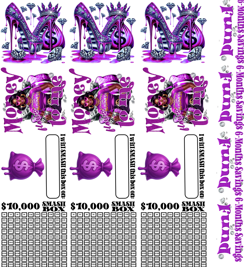 6 Months Saving Fund Smash Box UV DTF Stickers - 22 x24 Gang Sheet