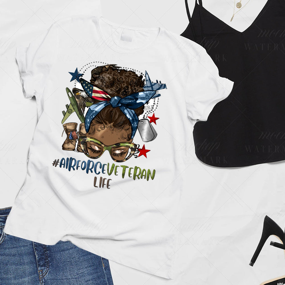 #AirForceVeteranLife Messy Bun DTF Transfer