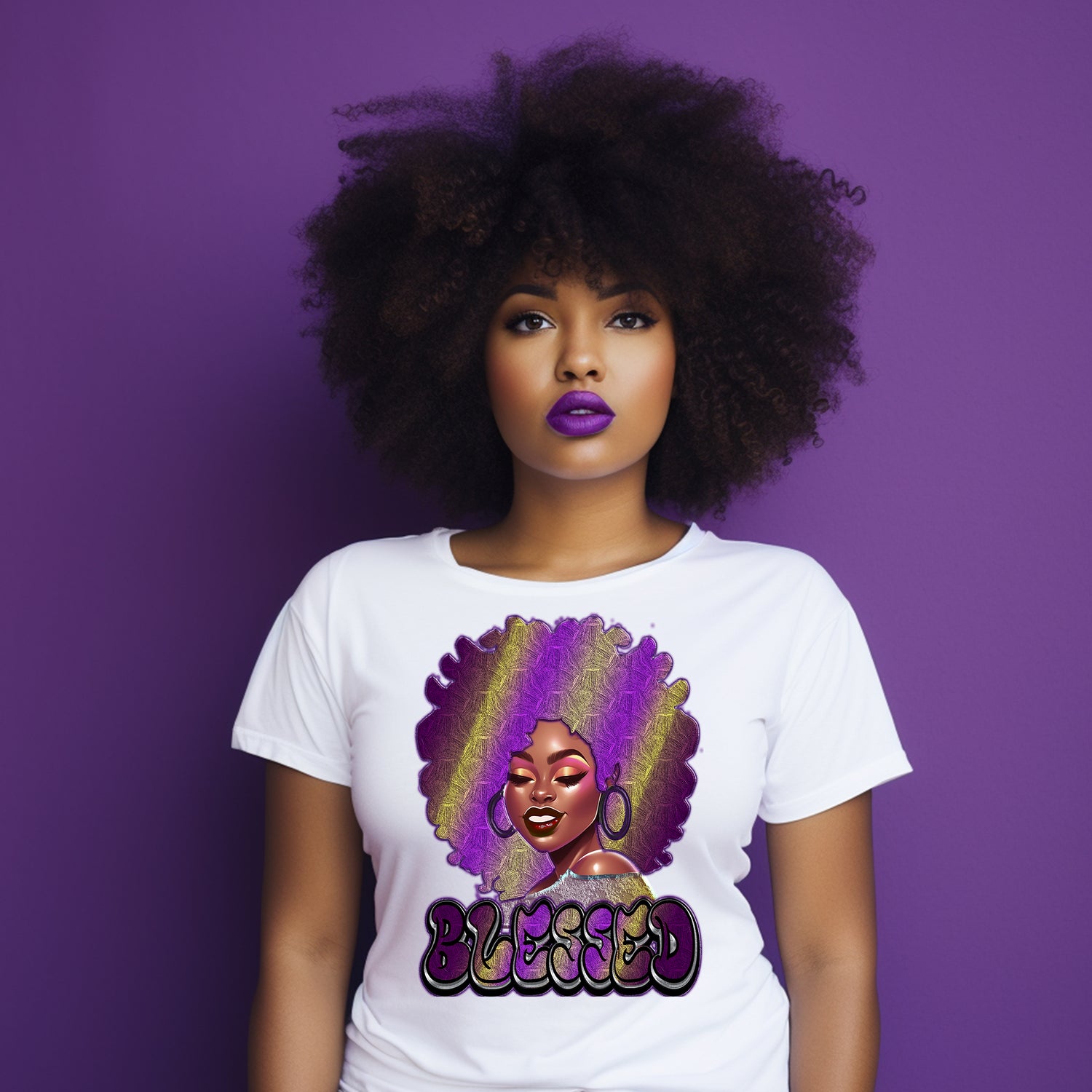 Blessed Purple Afro Woman DTF Transfer