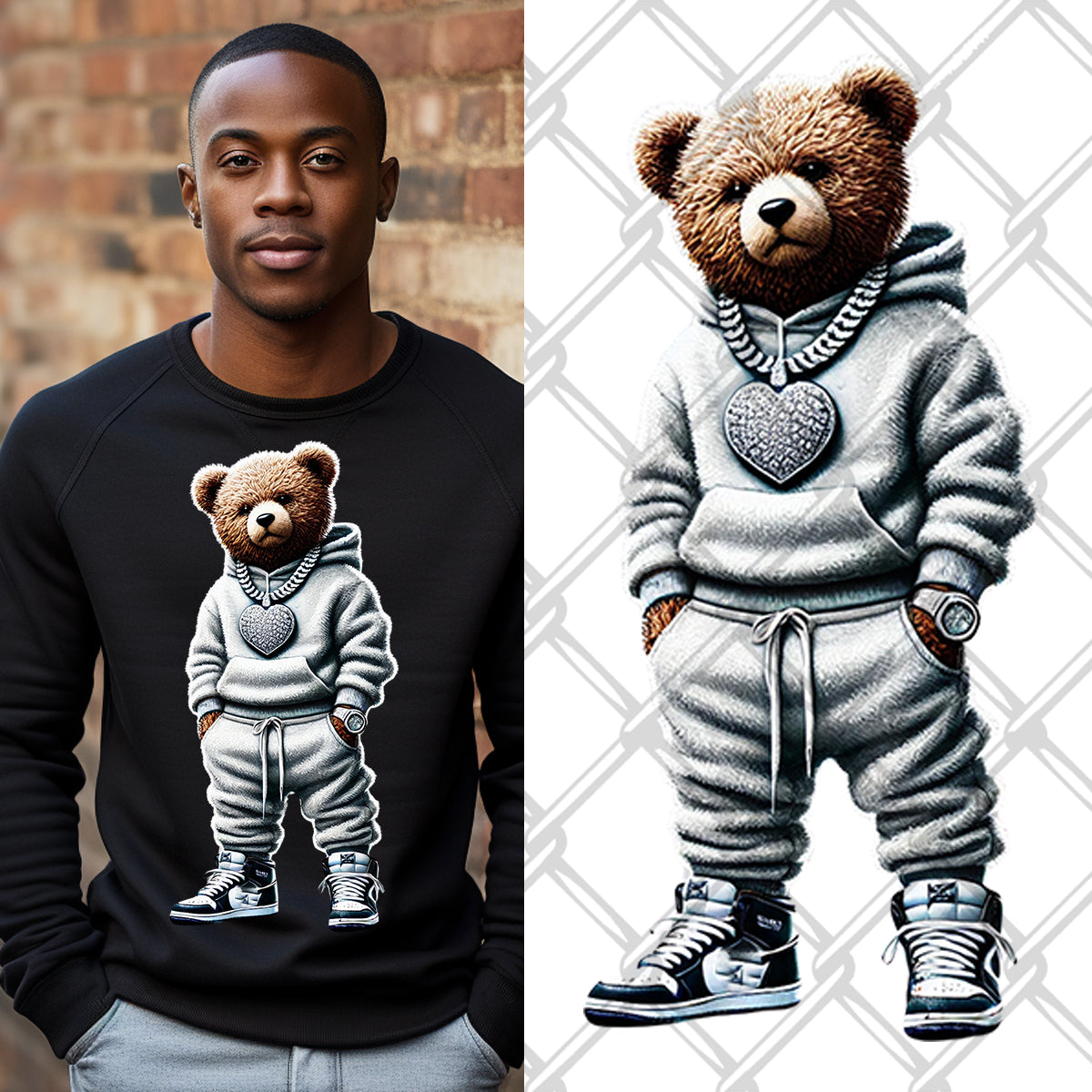 Heart Necklace Hip Hop Bear DTF Transfer
