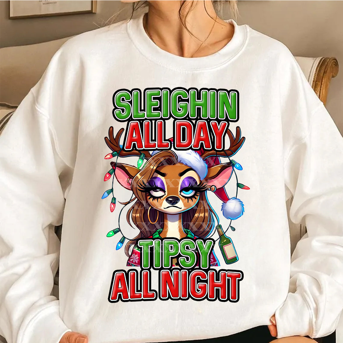 Sleighin All Day Tipsy All Night DTF Transfer